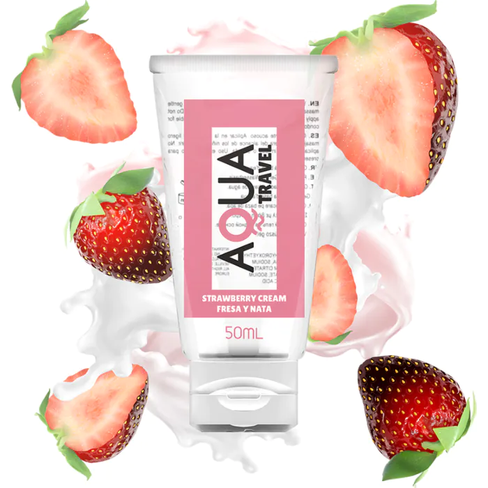 Aqua Travel - Lubrifiant à base d'eau saveur Fraises et Crème - 50 ml