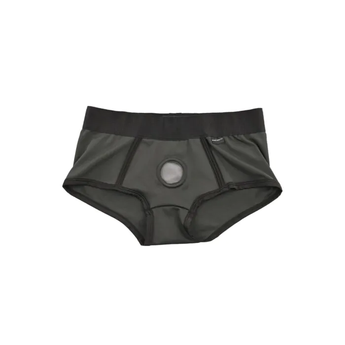 Harnais style boxer pensé pour porter au quotidien : tissu doux et extensible, ceinture élastique et anneau stable de 38,1 mm pour fixer un gode. Les deux poches pour balitas permettent d'ajouter vibration localisée. Choisis-le si tu veux une alternative confortable et discrète aux harnais à sangles ; si tu veux une grande polyvalence de tailles d'anneau, regarde d'autres modèles.