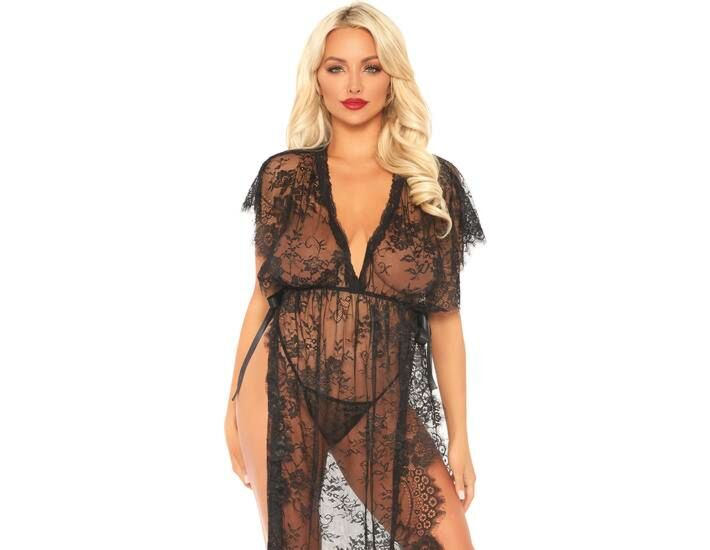 - Article Caftán de encaje con tanga a juego negro a été fabriqué par LEG AVENUE.