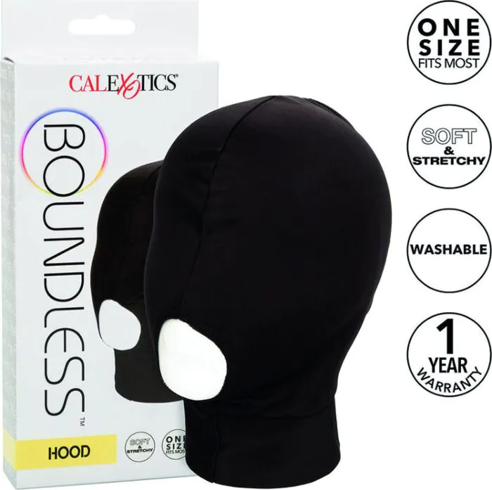 Profitez d'une expérience de jeu sensoriel avec le masque Boundless Hood de CalExotics. Idéal pour ceux qui souhaitent intensifier leur plaisir avec un design confortable et élastique.