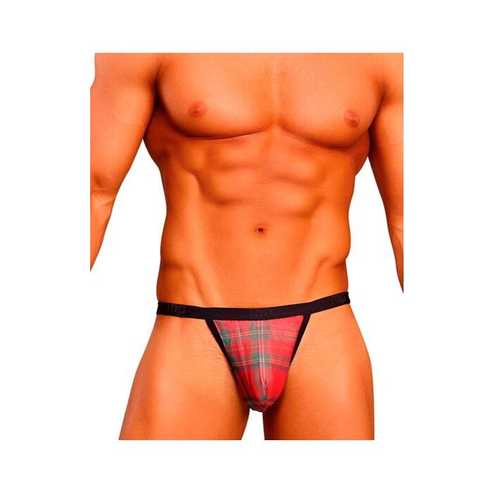 Micro tanga de estampado escocés en rojo. La cintura es ancha y elástica para acomodarse a tu cuerpo.