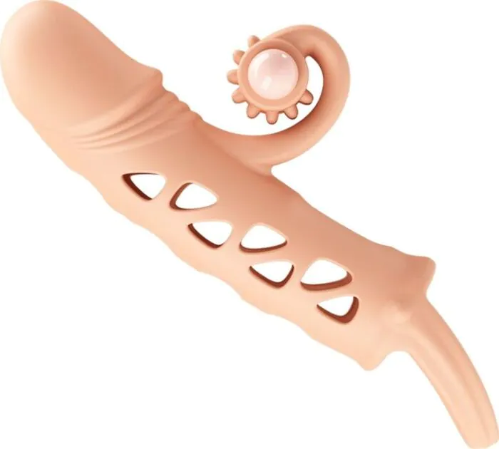 Offrez à votre partenaire une expérience intense avec ce manchon pénien. Sa texture réaliste et sa pointe vibrante garantissent des sensations partagées et mémorables.