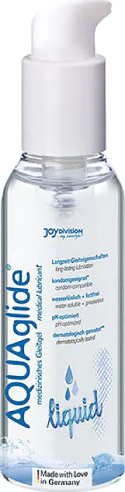 AQUAGLIDE liquid de JOYDIVISION est un lubrifiant au toucher cristallin, pensé pour améliorer la glisse lors des rapports vaginaux, anaux ou oraux. Sa texture liquide, issue d'un gel d'usage médical, offre une lubrification rapide et agréable. Convient aux personnes qui veulent une sensation fluide et non grasse, compatible avec préservatifs en latex et la plupart des sextoys, y compris en silicone.