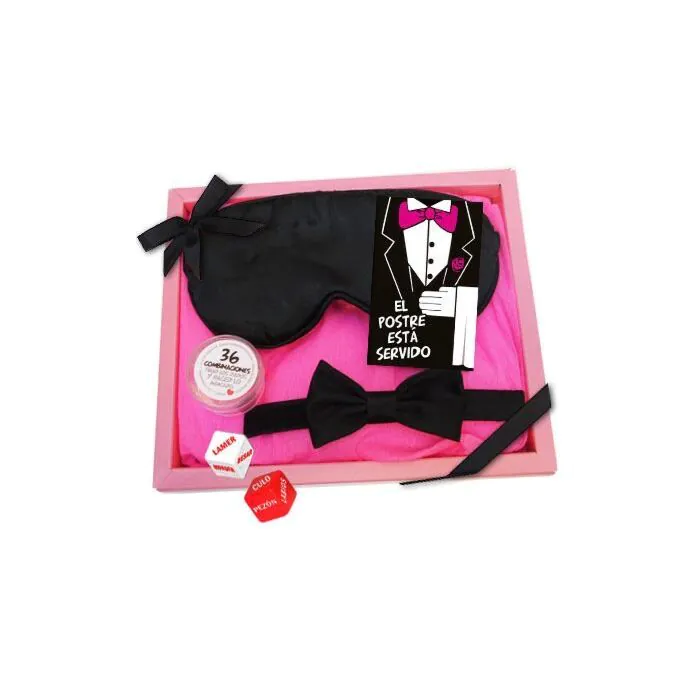 Êtes-vous prêt pour une expérience sensuelle et amusante ? Le Kit Érotique Masque Le Dessert est Servi est tout ce dont vous avez besoin pour ajouter une touche d'excitation à vos moments intimes. Ce kit comprend un masque, un jeu de deux dés avec 36 combinaisons différentes et un nœud papillon pour lui, tout ce qu'il faut pour une nuit pleine de surprises !