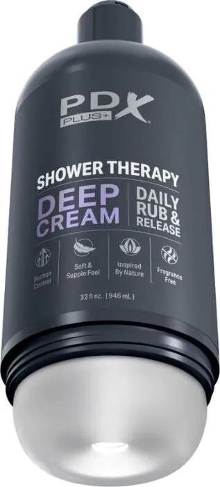 Le masturbateur Shower Therapy de PDX PLUS+ allie plaisir et discrétion. Imite une bouteille de shampoing pour une intégration recommandée dans votre salle de bain.