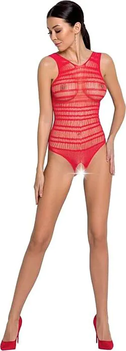 Sublime bodystocking en résille rouge, recommandé pour les femmes audacieuses. Avec une ouverture à l'entrejambe et des détails en dentelle, il souligne la silhouette avec sensualité.