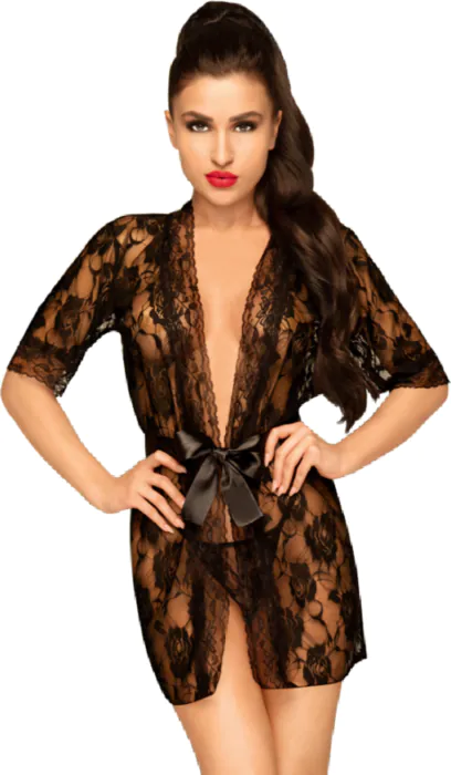 Un peignoir séduisant qui apporte une touche de luxe à votre lingerie. Le tanga assorti est un vrai plus pour compléter le look. Attention, ce peignoir est conçu pour des silhouettes XL, donc vérifiez bien votre taille.