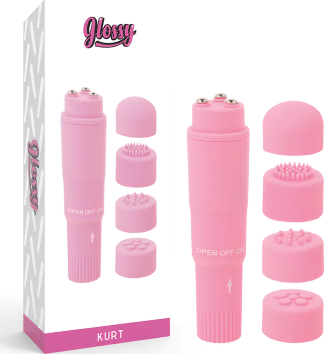 Mini vibrateur GLOSSY Pocket Kurt avec quatre têtes