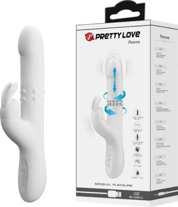 Le vibromasseur Reese de Pretty Love offre une stimulation simultanée du clitoris et du point G. Recommandé pour celles qui recherchent une expérience intense et variée.