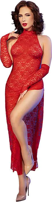 Robe sexy Chilirose CR 4853 en dentelle avec gants