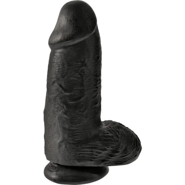 ¡Rencontrez le Roi des godes ! Le King Cock Chubby Pénis avec Testicules vous emmènera directement dans vos fantasmes les plus sauvages. Avec ses 23 cm de plaisir en couleur noire, chaque détail a été conçu pour une expérience ultra-réaliste. Fabriqué en PVC, il est compatible avec vos lubrifiants préférés et facile à nettoyer. Réalisez vos rêves les plus audacieux avec ce Roi dans vos draps !